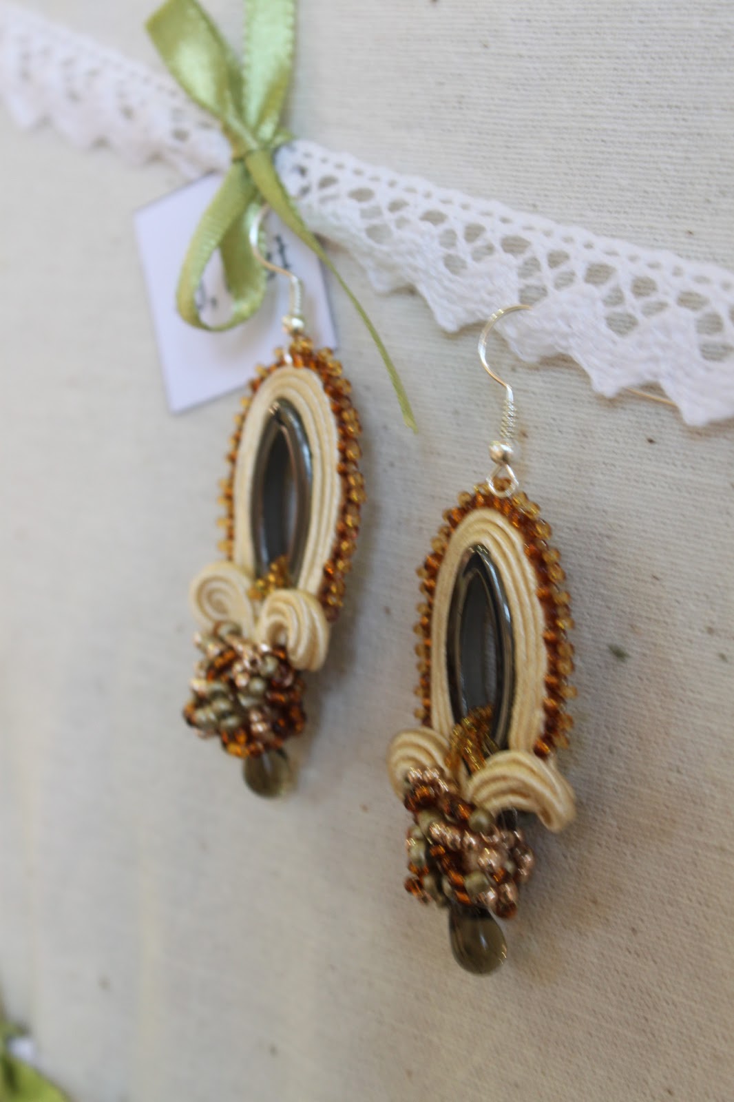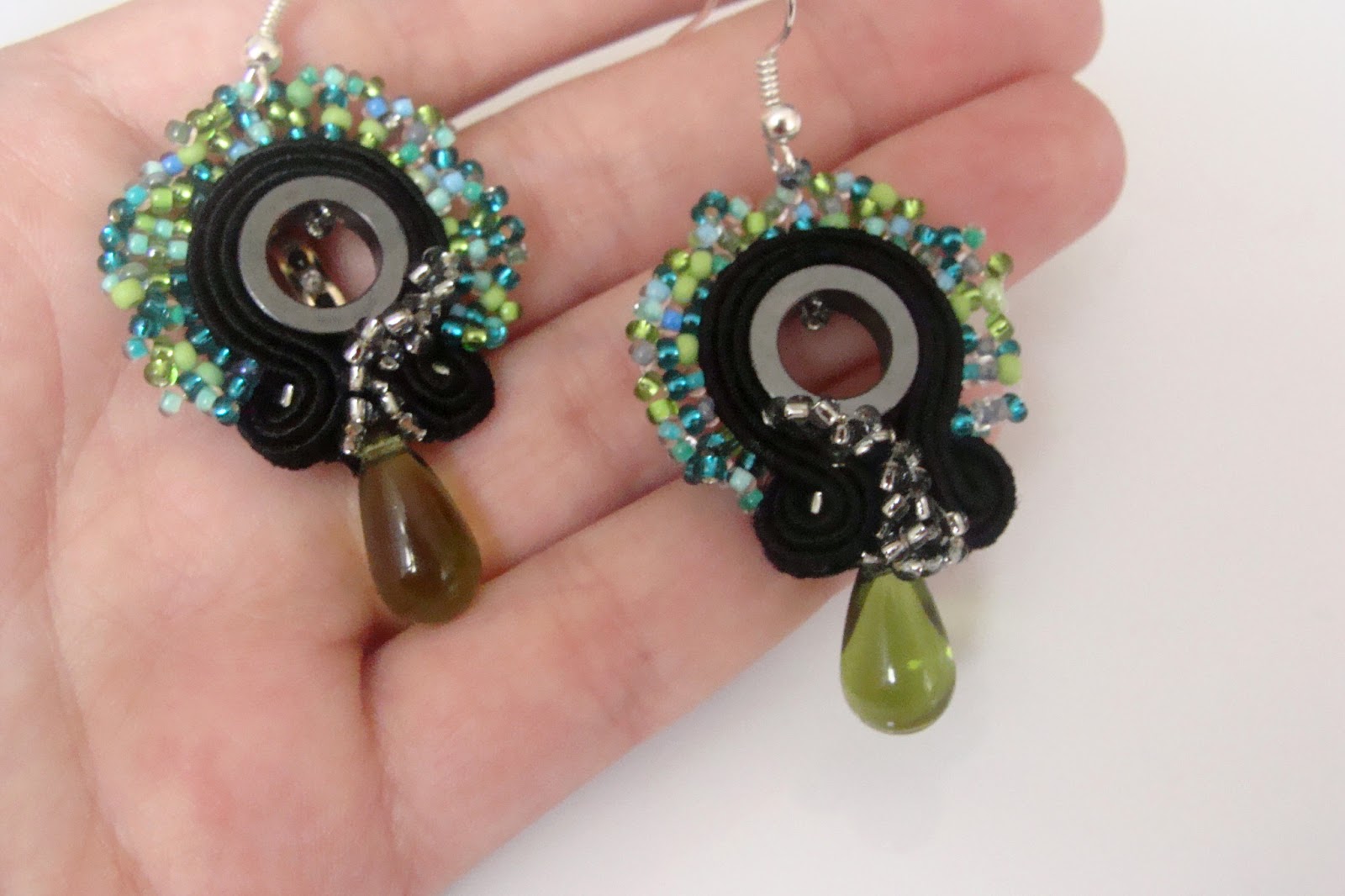 Korzystając z uprzejmości Asi z Dragonfly wrzucam zdjęcie kolczyków z sutaszu i hematytu o roboczej nazwie "rybki". Tym razem w żółciach - niech się dobrze noszą :)