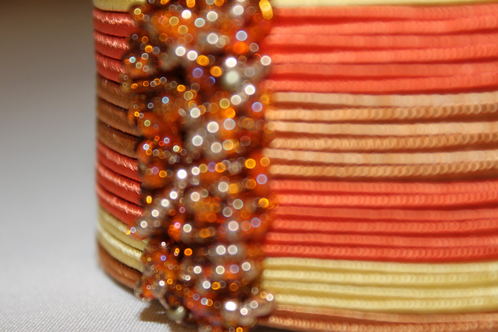 Za oknem śnieg i trochę chlapa, a mi już marzy się wiosna. Stąd wiosenna kolorystyka kolejnej bransoletki. Chyba mogę już ogłosić swoje prywatne wyzwanie "proste formy" :) Jak ktoś chętny do dołączenia do zabawy - zapraszam.Dzisiaj kolejna bransoletka z sutaszu, tym razem wykończona koralikami preciosa. W kolejce czekają kolczyki do kompletu. i sutaszowy wisiorek.